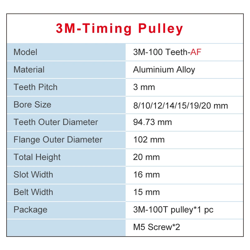 3M-100T Tárcsás Af Alak 8/10/12/11/11/20 Mm-Es Alumínium Anyag Szíjtárcsa-Nyílás Szélessége 16 Mm-Re 3 Méteres Vezérműszíj Szélességére 15