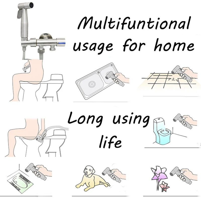 3M Tömlő Kézzel Tartott Wc -Bidet Permetező Pisztoly Rozsdamentes Acél Fürdőszoba Anya Duzzsa Tisztító Csaptelep Segg Zuhany Kiegészítők