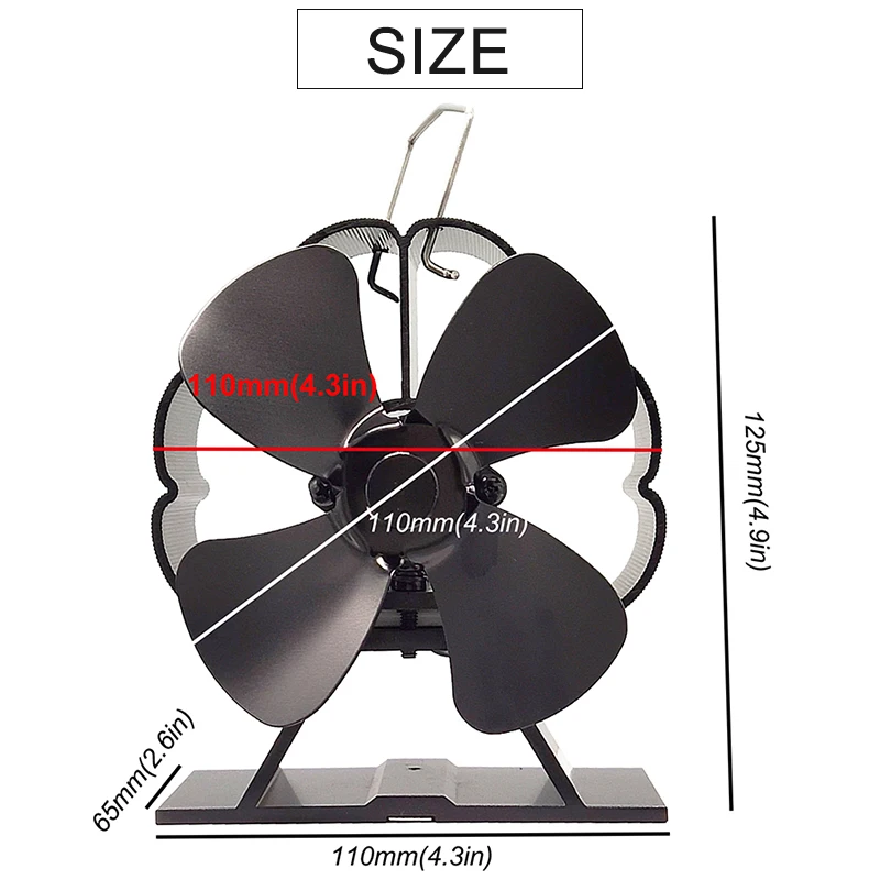 4 Blade Kályha Ventilátor 160-210Cfm 1300 Fordulat / Perc Hőhatású Mini Fa Fatörzs Kandalló Slient Öko-Grienly Fann