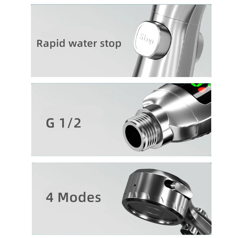4 Üzemmód Hőmérséklet Digitdisplay Zuhanyfej Kézi