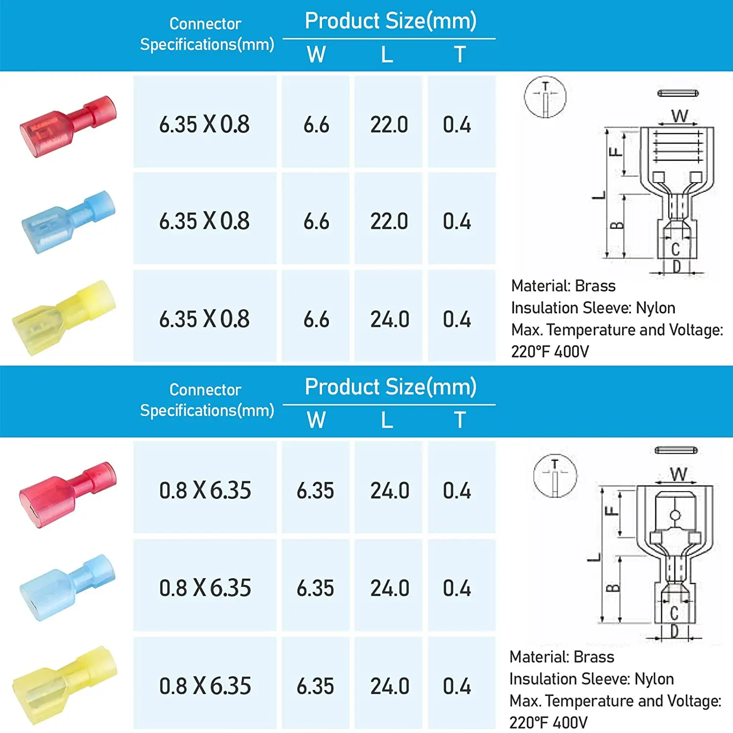 400Db Nejlon Ásó Gyors Leválasztó Csatlakozók Készlet Elektromos Szigetelt Terminálok Hím És Anya Huzal Krimpel