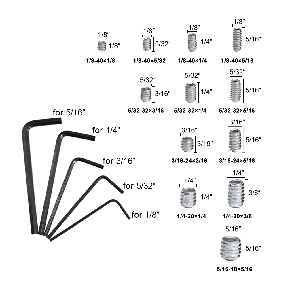 - Size: 5/16 1/4 3/16 5/32 1/8 Hex Allen Head Socket Inch Set Screw