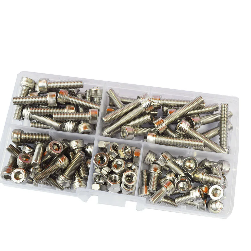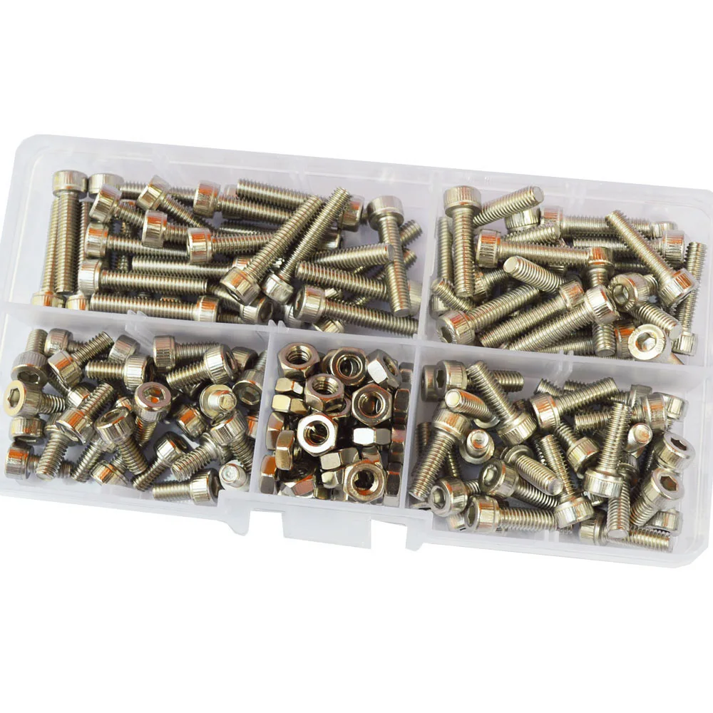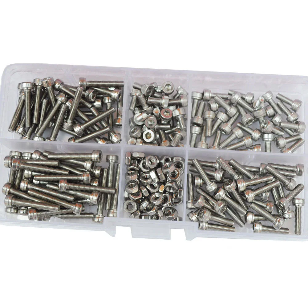 420/210/180/110/75 Pcs M2 M2.5 M3 M4 M5 M6 M8 304 Rozsdamentes Acél Hatszögletű Hex Aljzat Kupakja Csavar Csavaros Anya -Készlet Választékkészlet Készlet