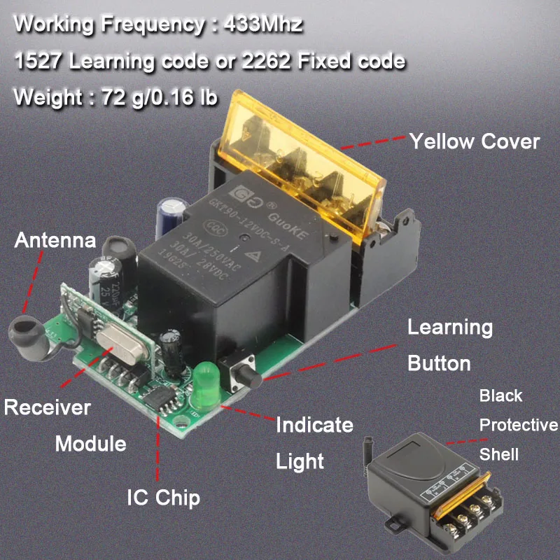 433Mhz Vezeték Nélküli Távirányító Kapcsoló Dc 12V 75V 30A Nagy Teljesítményű Relé Vevő 1000 Méter Távoli Kikapcsolás Az Elektromos Eszközhöz