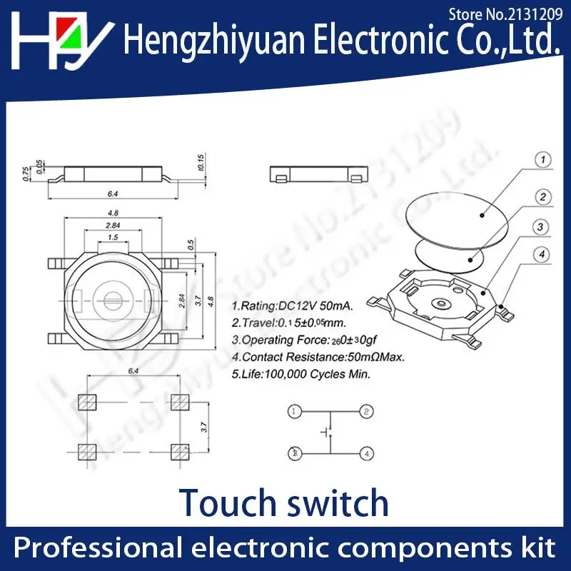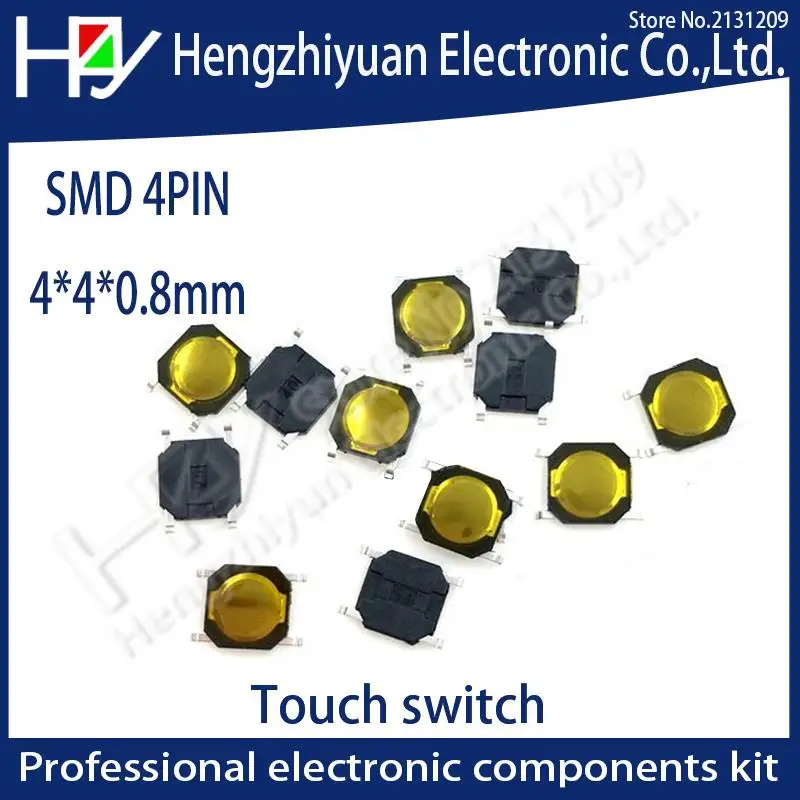 4*4*0,8 Mm -Es Autó Távirányító Kulcs Kapcsolók Gombok Tapintható Nyomógomb Kapcsolót Tapintat 4 Tűs Kapcsoló Mikro Smd