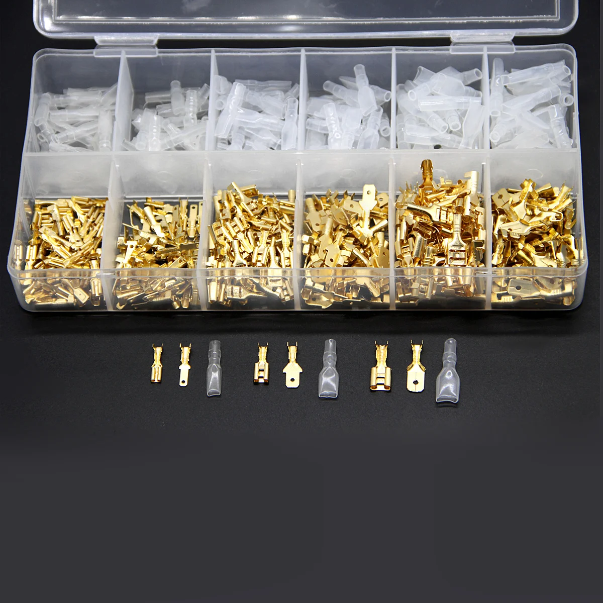 450Pcs 2,8/4,8/6,3 Mm Anya Hím Elektromos Ásóhuzalt Fenekű Csatlakozók Fülek Akkumulátor Indító Kábelelszívítő Krimpelnöki Készlet