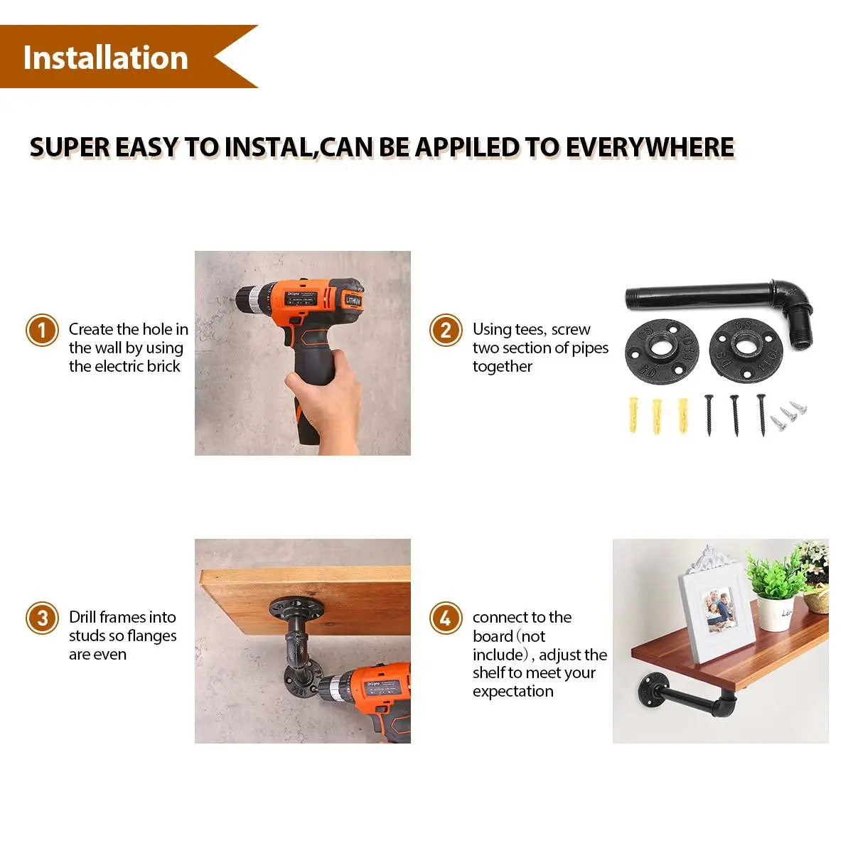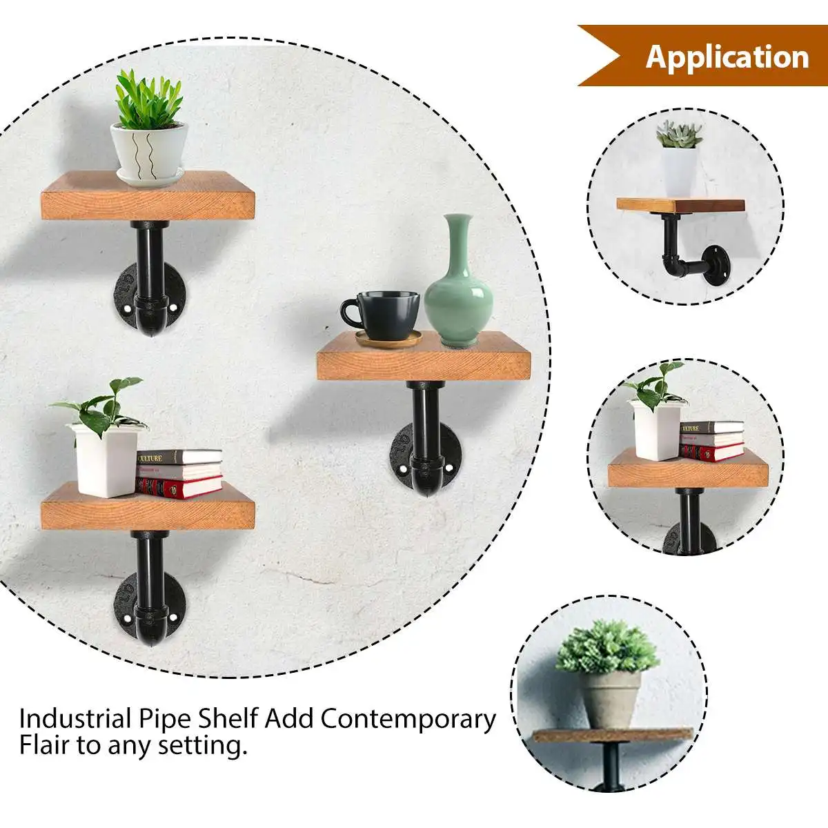 4Db Fekete Vas Ipari Cső Polc Tartó Állvány L Konzol Vintage Retro Fal Úszó Otthoni Dekoráció Tároló Tartók