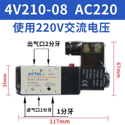 4V210-08 1/4 “Dc 12V/24V Ac24V/36V/110V/220V/380V 5 Wast 2 Pozíciós Pneumatikus Elektromos Mágnesszelep Bsp Airtac-Hoz Az