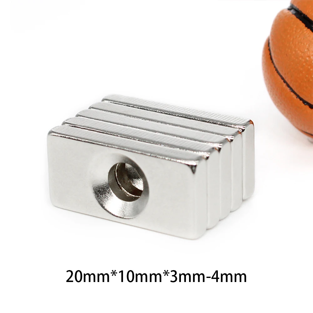 5/10/20/50/100Pcs 20X10X3-4 Mm Blokkvizsgáló Keresési Mágnes Lyuk 4Mm Lap Erős Állandó Ndfeb Mágnesek 20*10*3-4