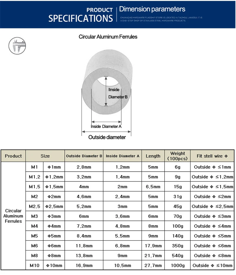 5-100Pcs M1 M1,2 M1,5 M2 M2,5 M3 M4 M5 M8 M10 Huzalkábel-Kötél Rögzítése Körkölt Kerek Alumínium Ferrulák Crimping Bilincsek