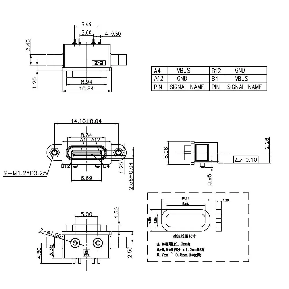 5-50 Százalékos Usb Típusú C 4Pin Vízálló Anya Mikro Usb-C Jack Socket Port Csavarteljesítmény-Töltő Interfész Csatlakozóval