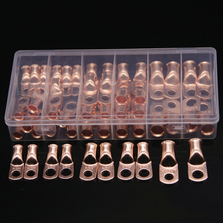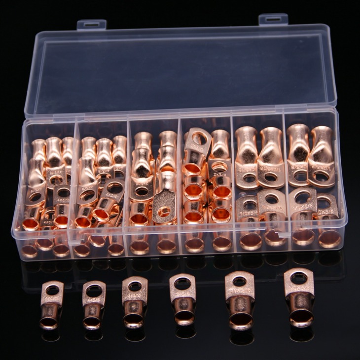 50Db 1/0 Awg 2 Awg 4 Awg Csupasz Rézhuzal Ringterminal 3/8 “5/16” Elektromos Kábelcsatlakozók Lug Terminals Assortment Kit