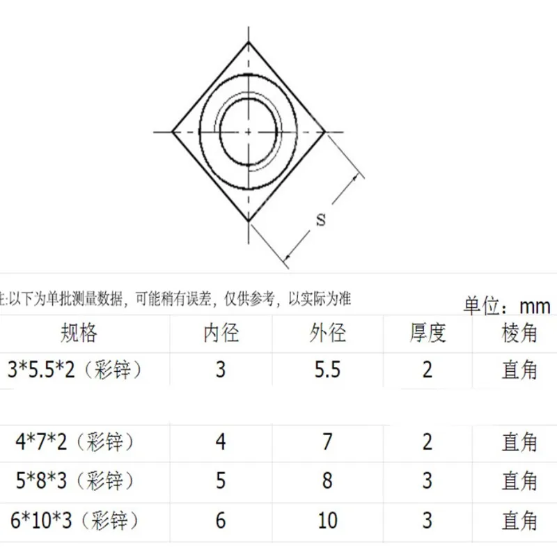 50Db Acél Cink M3 M4 M5 M6 Din562 Vékony Metrikus Négyzet Alakú Diófélék