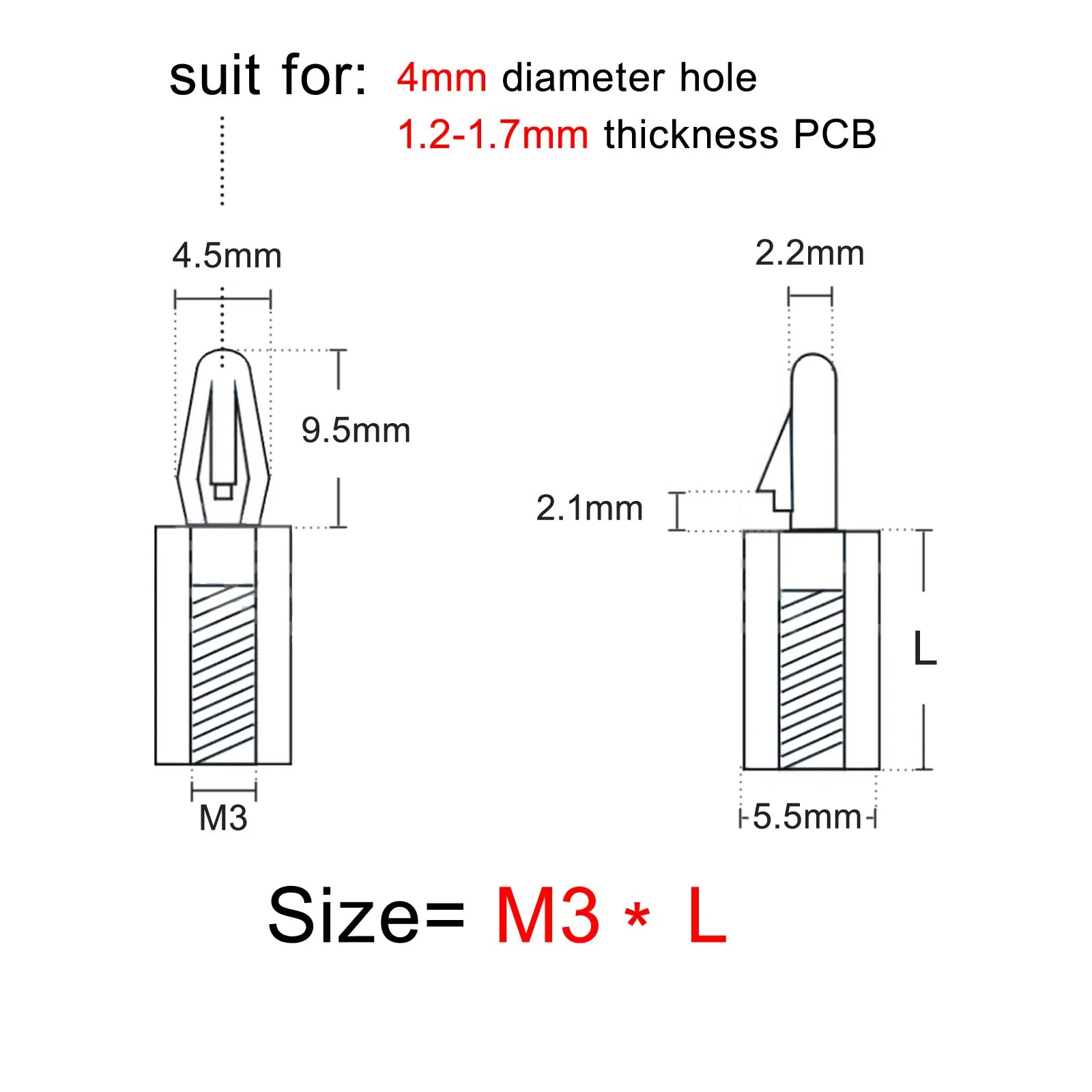 50Db M3 Hex Hexagon Nylon Nejlon Műanyag Kiálló Távtartó Zárat Nyomja Be A Klipre Rögzített Tartóban Lévő Nyák -Ban 4 Mm -Es Lyukhoz 1,6 Vastagság
