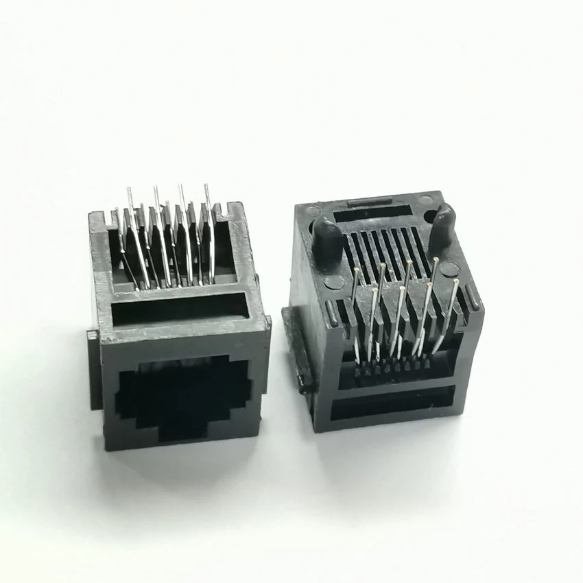 50Db/Tétel Pcb Rj45 8P8C Femlae Jack/Aljzat Csatlakozó 180 Fokos Függőleges Fekete Teljes Műanyag Élekkel