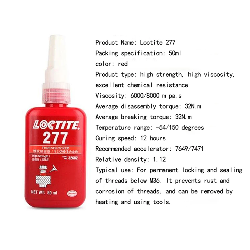50Ml Loctite 277 Szálrögzítő Szer Anaerob Ragasztó Ragasztóolaj -Ellenállás Gyors Kikeményítés Mindenféle Fémszálhoz