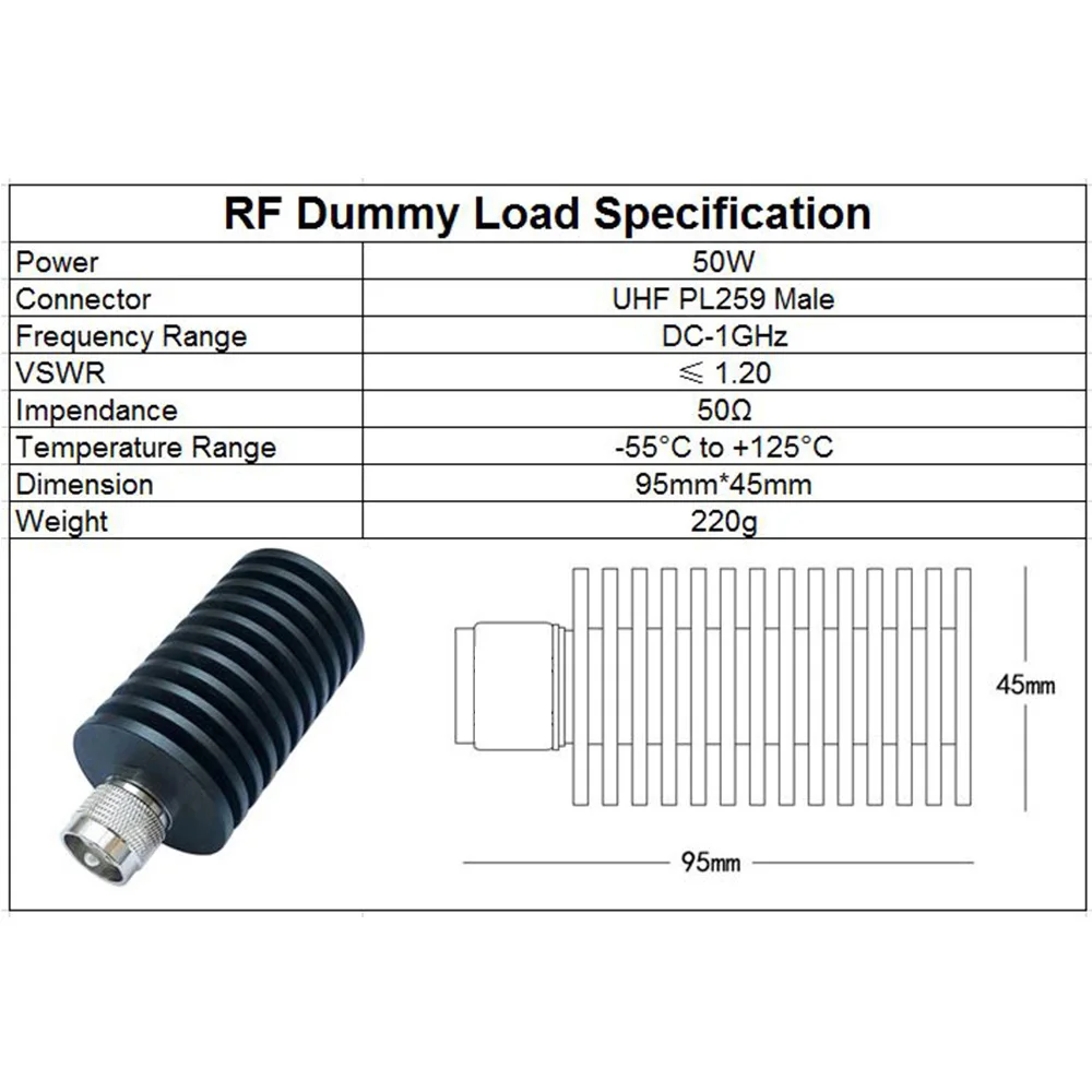 50W Uhf Pl259 Hím Dugó Csatlakozó Rf Koaxiális Végződés Dummy Terhelés 1 Ghz 50Ohm Nikkel Bevonatú Kiegészítők