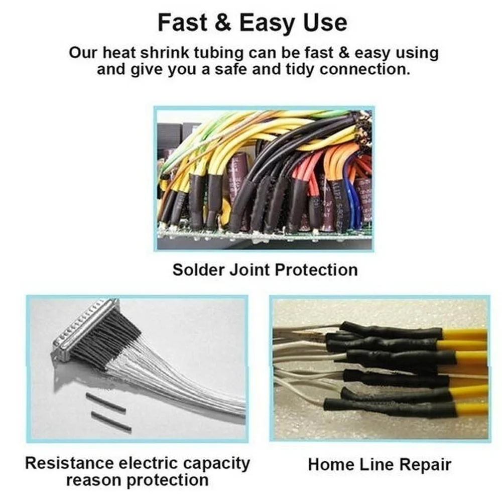 530Db/Set Poliolefin Zsugorodó Válogatott Hőkezelő Csőhuzal -Kábel Szigetelt Hüvelyes Cső 2: 1 Vízálló Csőhüvely Készlet