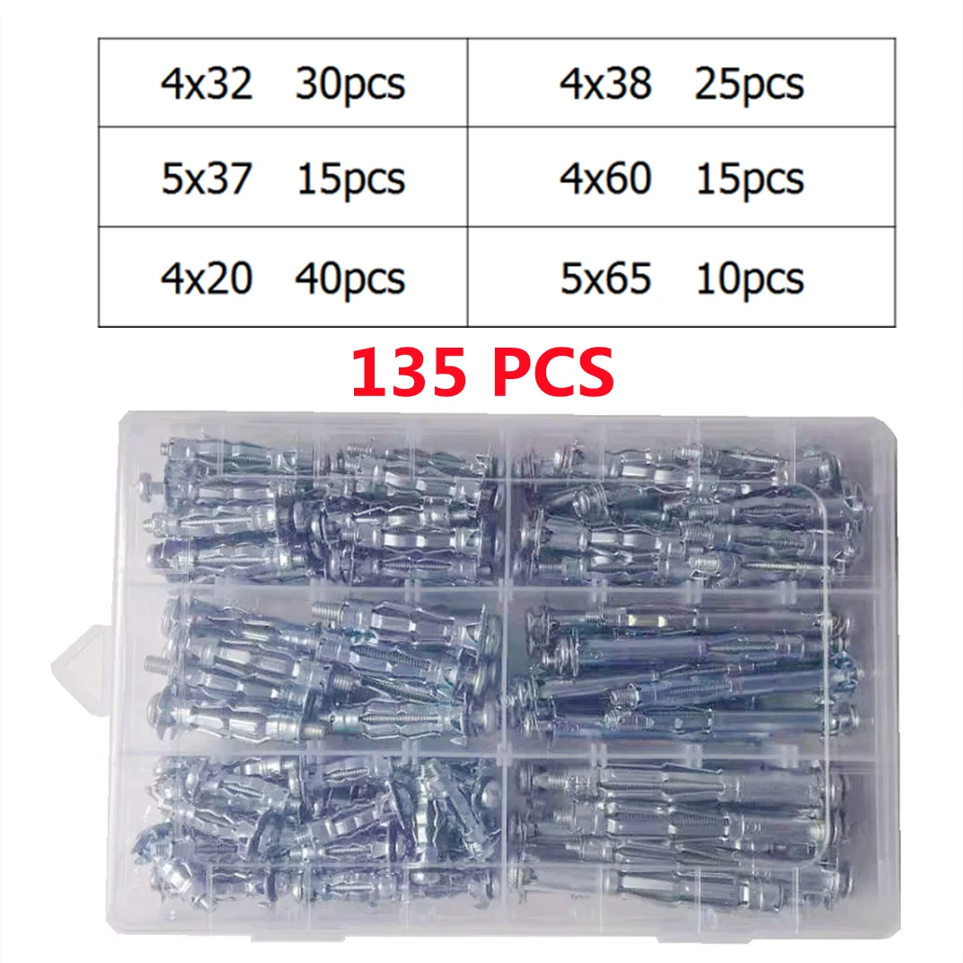58/135Pcs Üreges Falhorgony Fémbeállítás M4 M5 Vegyes Csavarkészlettel A Sheetrock Csavarlyukakhoz Rögzítő Autó Karosszéria Javító Szerszám
