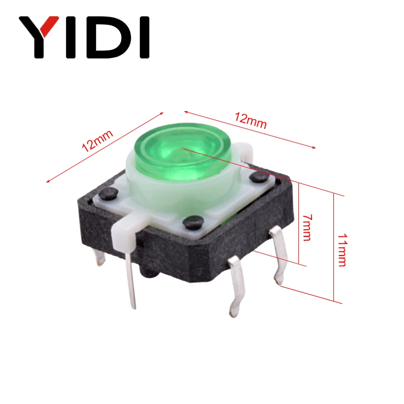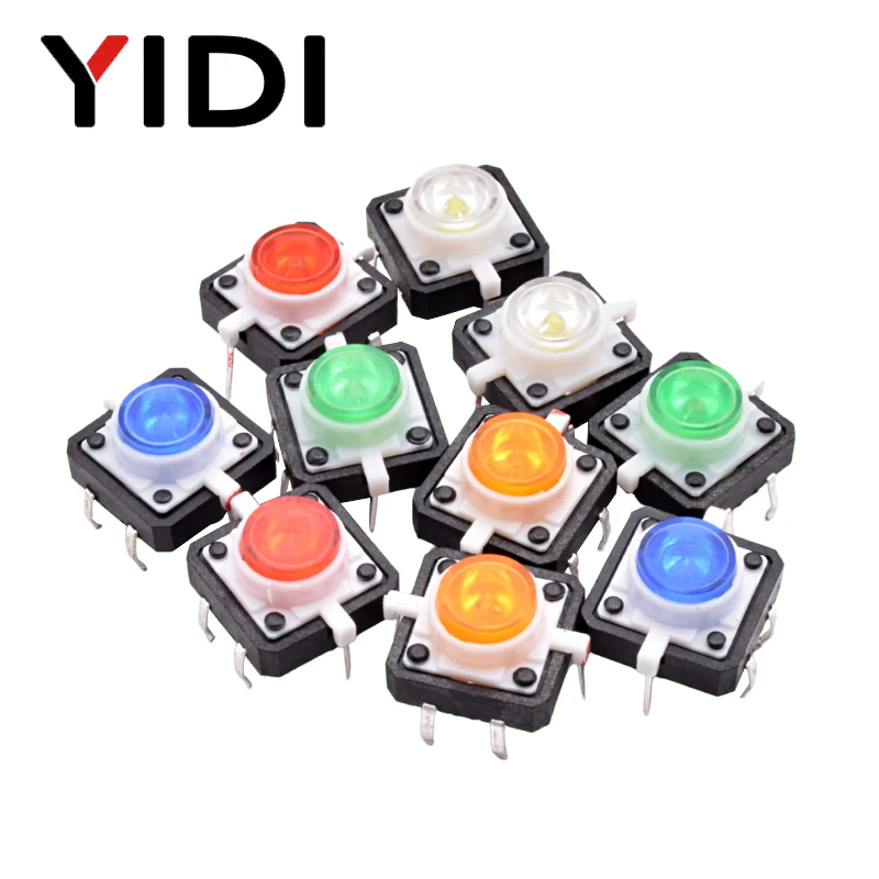 5Db 12*12 Mm -Es Megvilágított Tapintat Tapintható Mikro Kapcsoló Nyomógomb Visszaállítása Pillanatnyi Piros Sárga Kék Fehér 12Vdc Led Forrasztó Tű