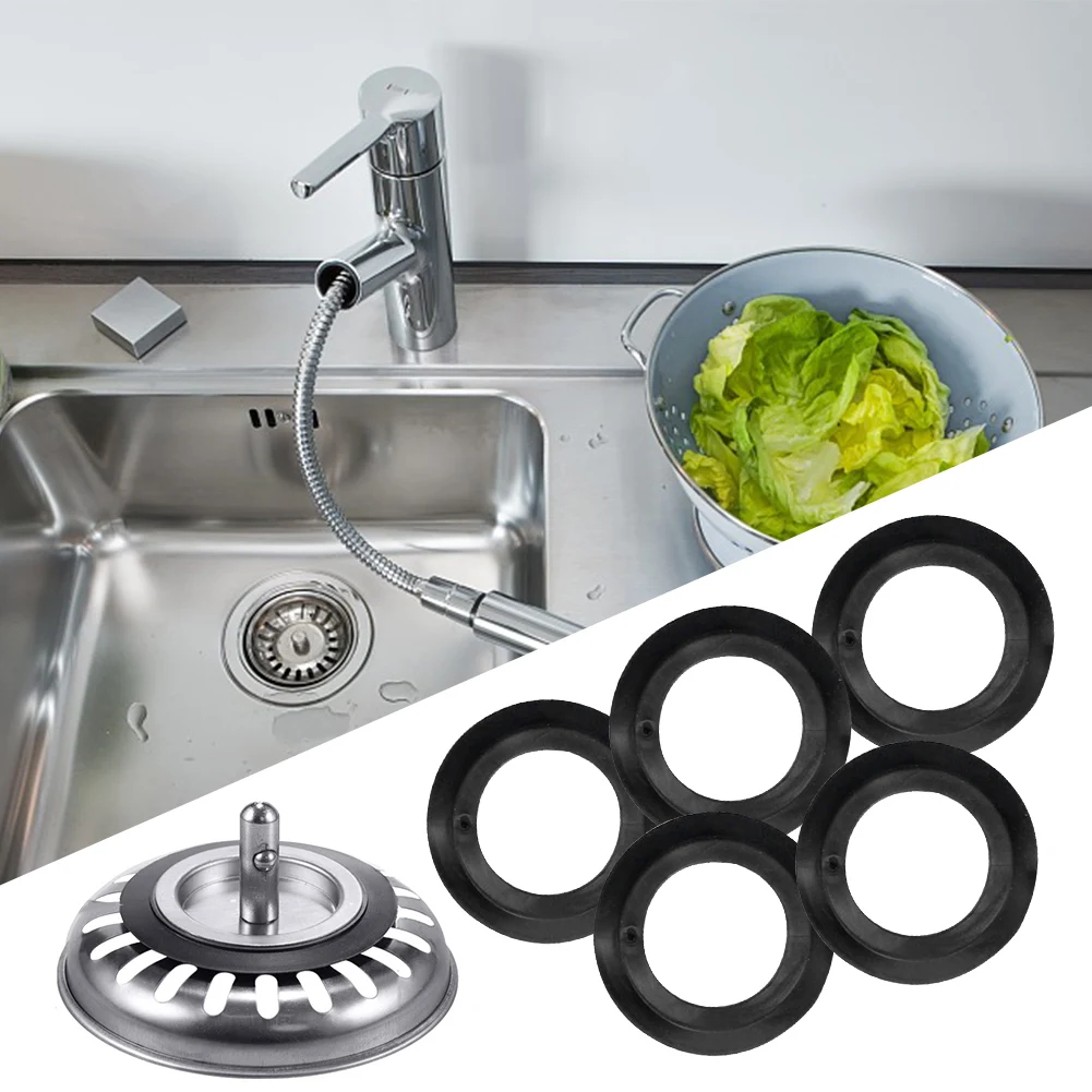 5Db Dugó Mosogató Szűrő Mosócsere Alkatrészek Tömítés Könnyű Telepítés Fekete Gyűrű Tartós Kosár Konyha Puha Pvc -Hez
