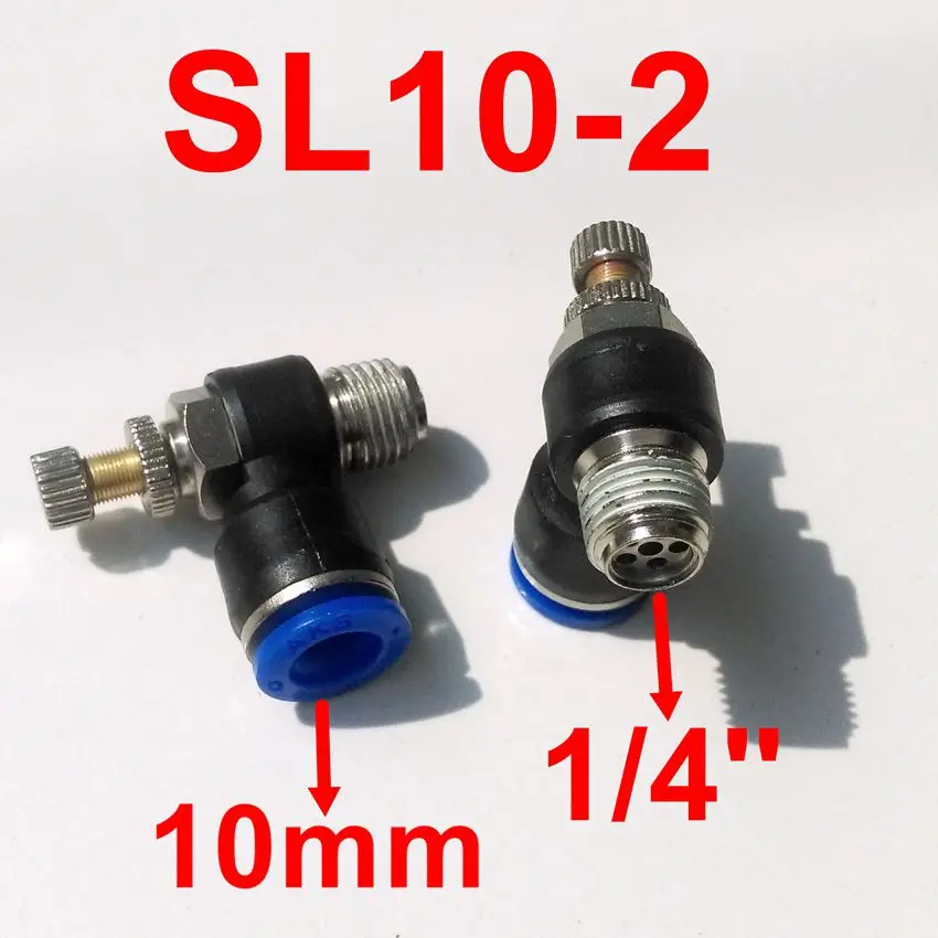 5Db/Tétel Pneumatikus Levegő Illesztő Fojtószelep Air Sebességszabályozó Sl10-2 Cső 10Mm 1/4 ‘