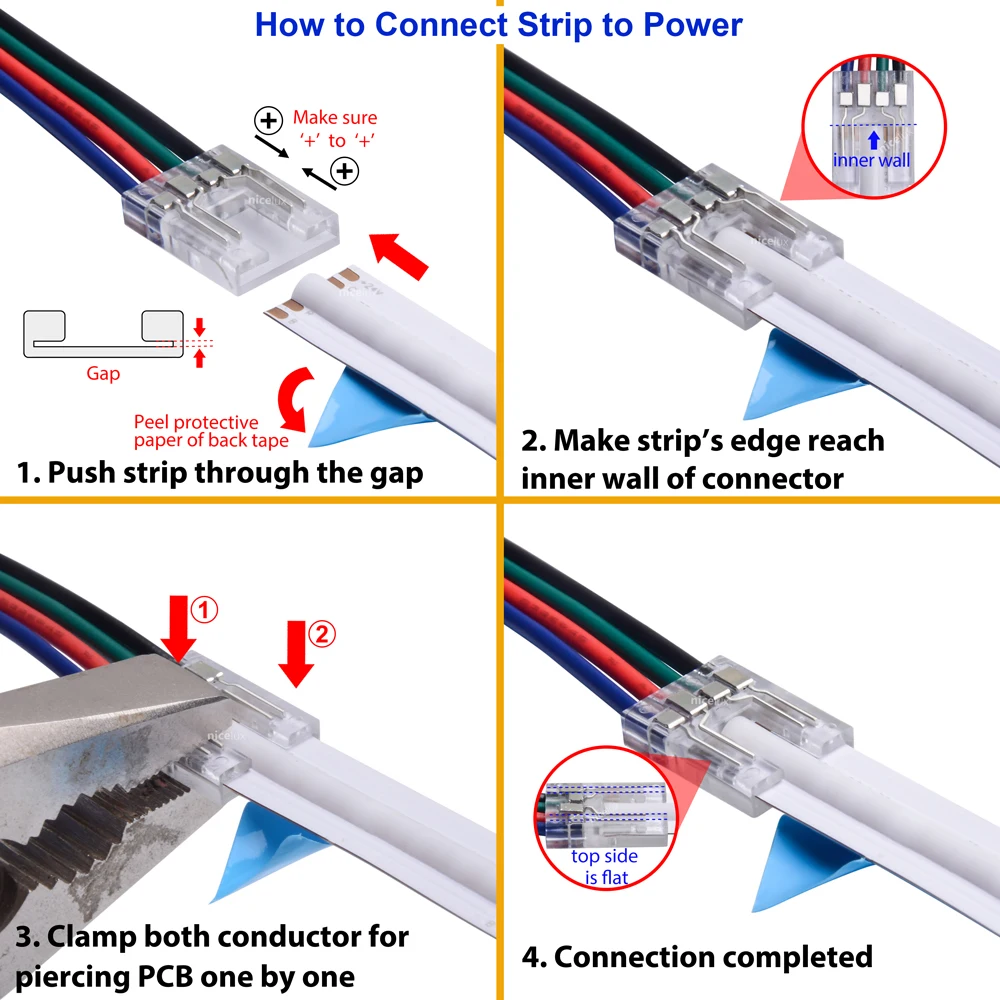 5Dbs 3Pin 4Pin Cob Led Szalag Lift Csoportok 10 Mm -Es Ip20 -Hoz Rugalmas Nagy Sűrűségű 3 Típusú A Szalaghoz Könnyű Csatlakoztatáshoz