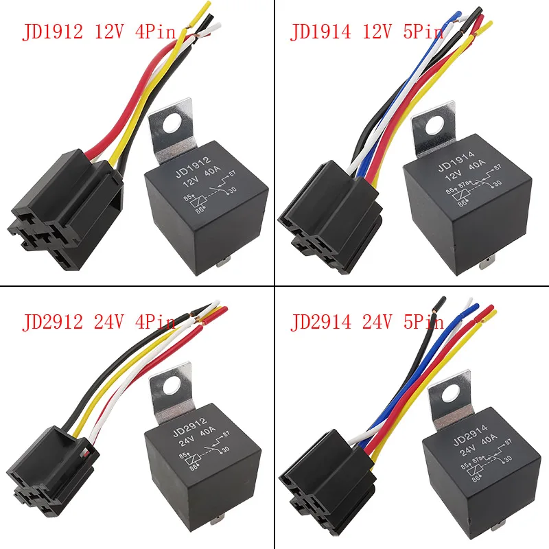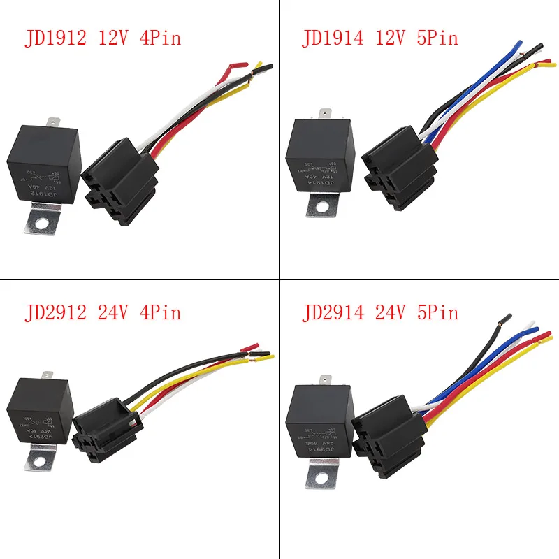 - Model 1: JD1912 Car Relay 12V 40A 4Pin with 4-Wire Relay Socket