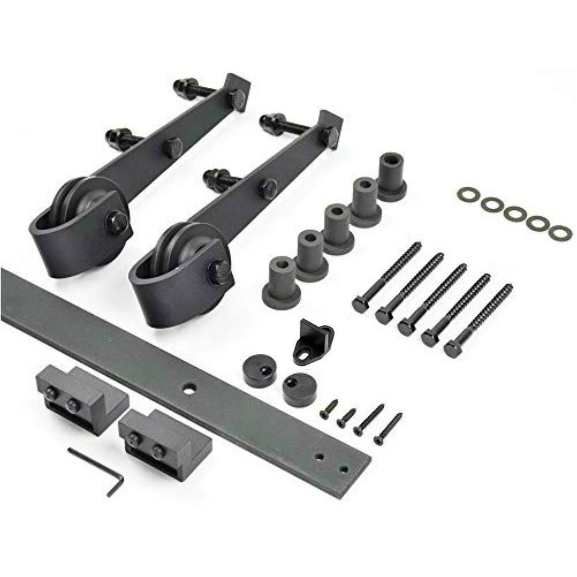5Ft / 6Ft 6,6 Láb Fekete Acél Rusztikus Fa Csúszó Pajta Ajtó Hardver Belső Pályakészlet Készlet
