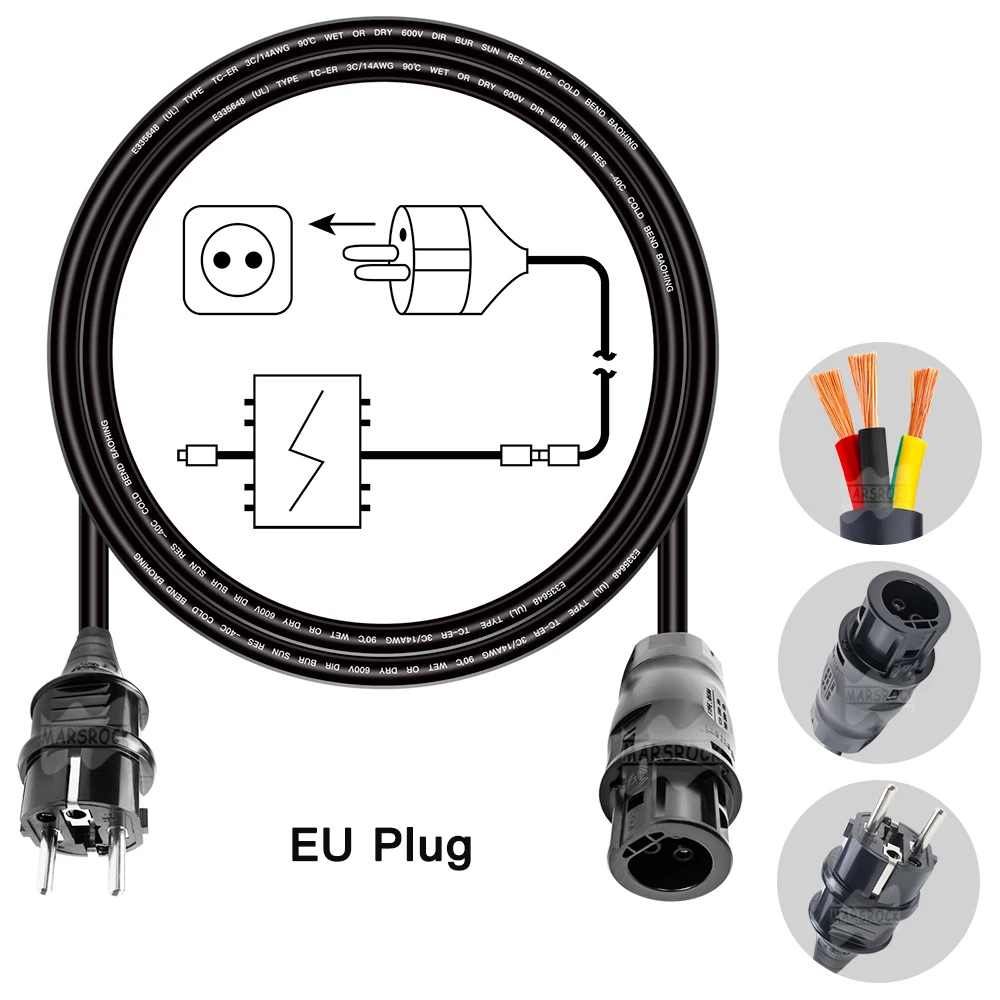 5M Vagy 2M 14 Awg Ac Power Hosszú Kábel 220 V Eu, 3 Mag Csatlakozóval És Eu Dugóval, A Tuv Ul Jóváhagyva Napenergia -Mikroinverterre