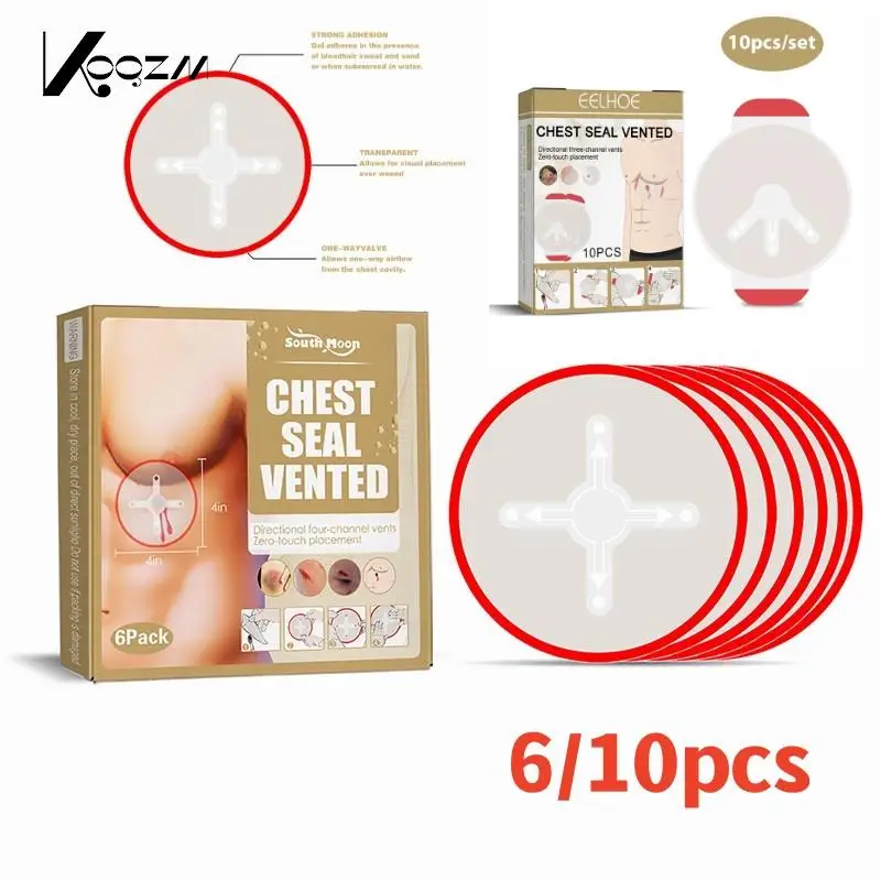 6/10 Db Elsősegély -Javítás Mini Biztonsági Túlélési Sürgősségi Trauma Matrica Mellkasi Pecsét Orvosi Mellkas Szellőztetett Kültéri Eszköz