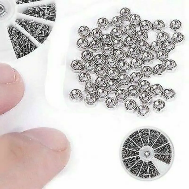 600 Dcs/Box 1 Box 12 Méret Kis Acél Csavarok Anyák M1 M1,2 M1.4 M1.6 Válogatott Doboz.