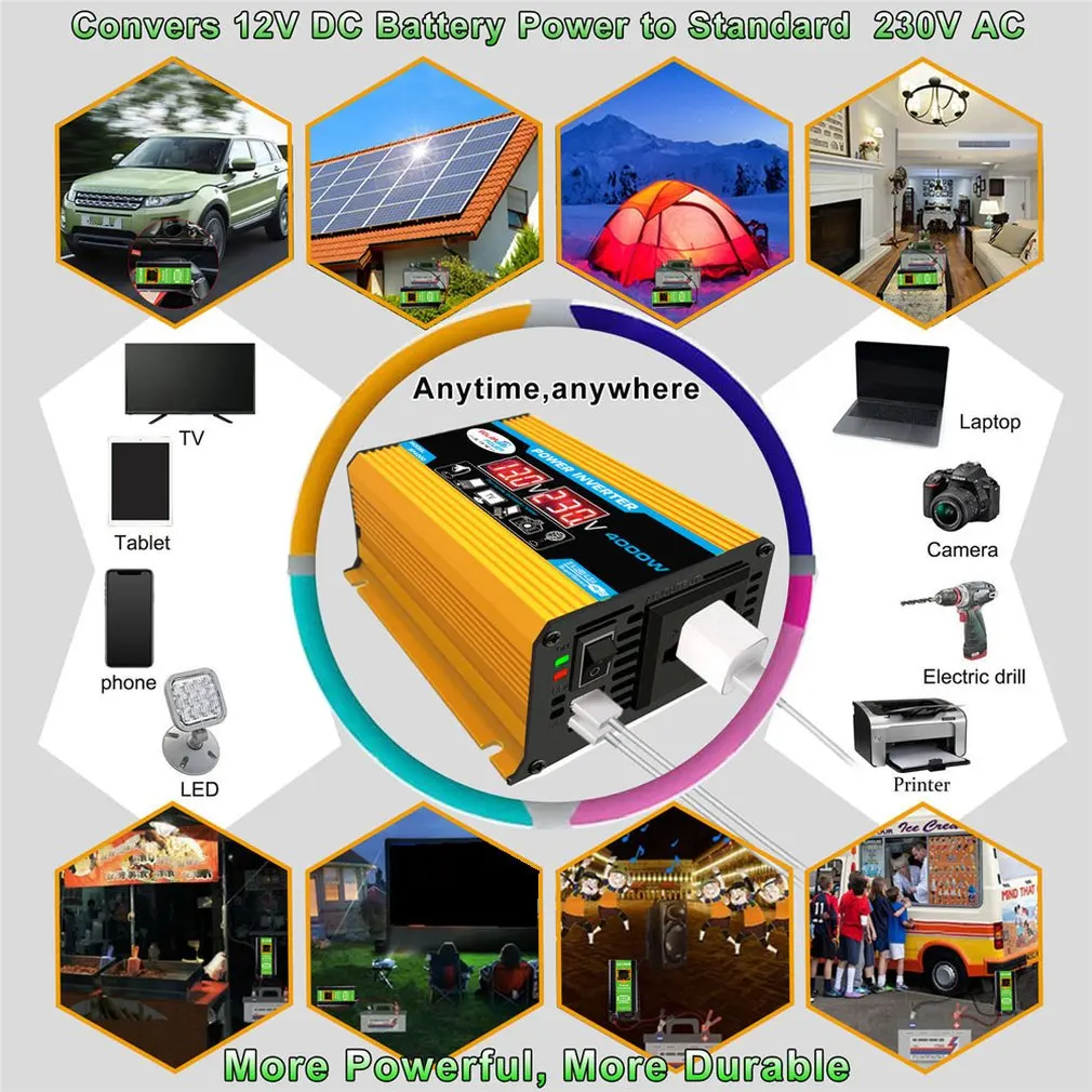 6000W Digitális Autó -Inverter 12 V – 220 Módosított Szinuszhullám Feszültségkonverter Lcd Kijelző