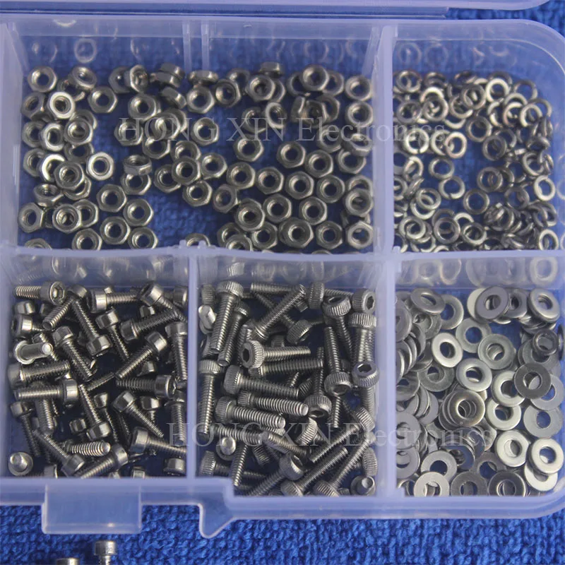 600Db/Set M2 304 Rozsdamentes Acél Hex Aljzat Csavarok Hexa Anyákkal Alátétek Választékkészlet Készlet Hardver