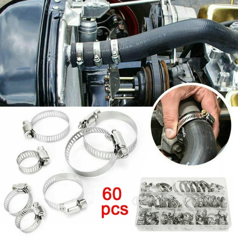 60X Válogatott Rozsdamentes Acélból Készült Tömlőbilincskészlet, Nincs Vezető Jubileumi Klipek Beállítva