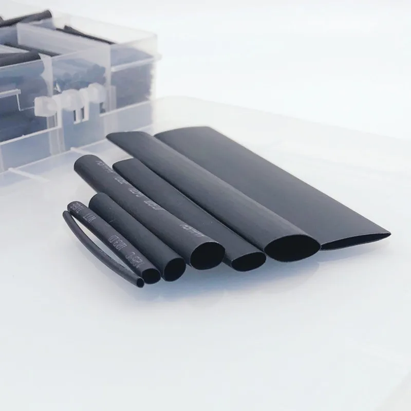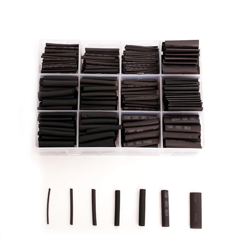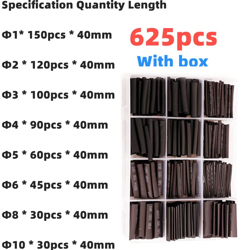 625Pcs Fekete Dobozos Hőcsökkentés 2: 1 Elektronikus Csatlakozó Készlet Szigetelt Poliolefin Hüvelyes Zsugorodó Kábelek És Cső