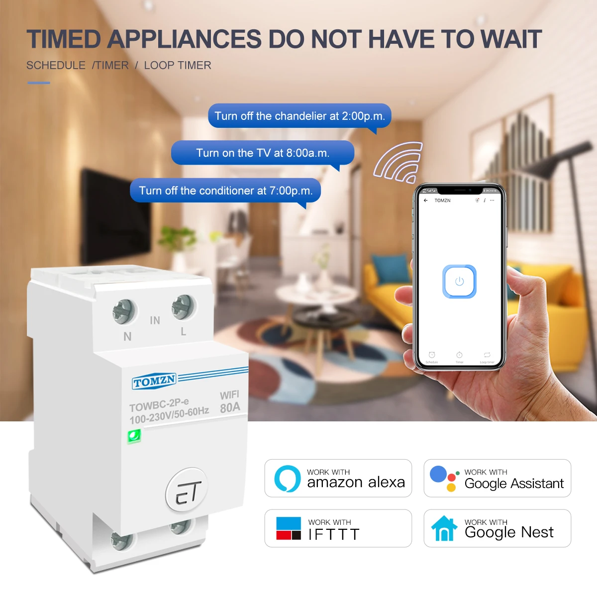 63A 80A Egyfázisú Din Sín Wifi Megszakító Intelligens Kapcsoló Távirányítás Ewelink Alkalmazásban Az Otthoni Tomzn Mcb Időzítő
