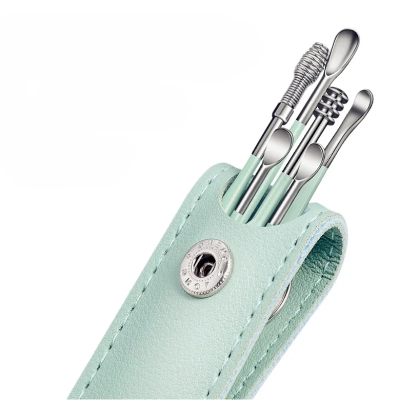 6Db/Beállított Fülkák Védőfedeles Táskával Rozsdamentes Acél Fülbevalók Fültisztító Szerszámok A Viasz Eltávolítása Fülviasz Eltávolítóból