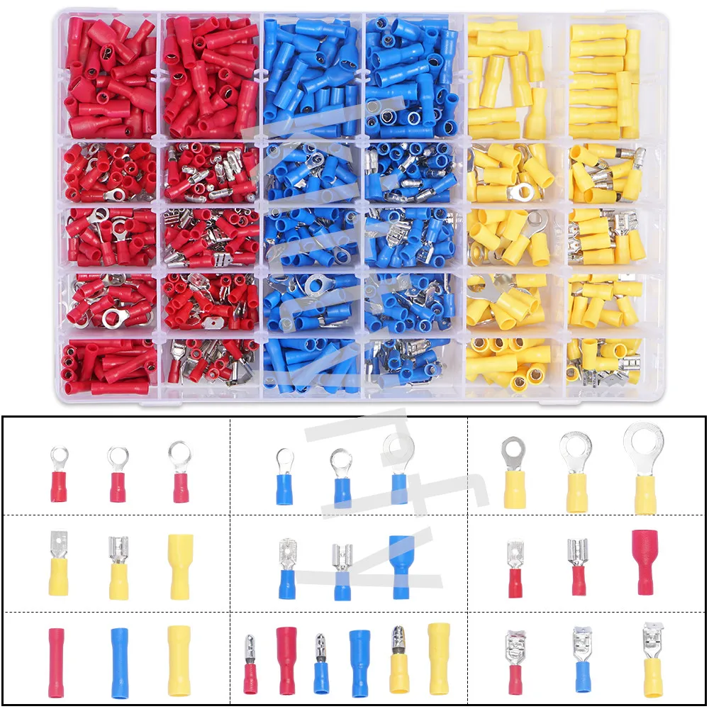 720/480/280Pcs Válogatott Villa Csatlakozó Ásványi Krimpelnöki Terminál Vegyes Készlet Gyűrű Szigetelt Autó Vezeték Elektromos Vezetékcsatlakozó