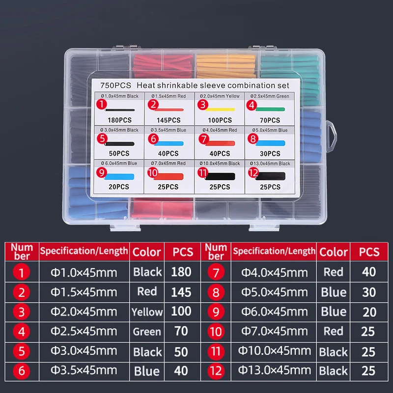750Pcs Hőstisztáns Cső Zsugorodó Hő Csövek Hőhengeres Hüvelykábel-Termoretraktil