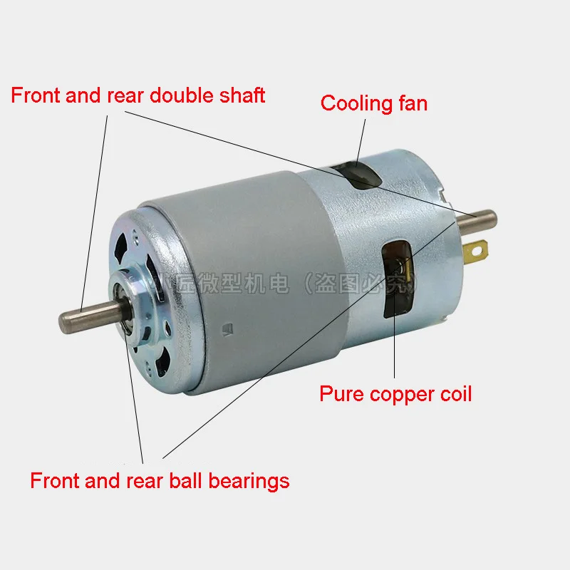 795 Motoros Kettős Kimeneti Tengely Nagy Teljesítményű Dc Nagysebességű Motor 12-24 V Tiszta Rézhuzal Nyomatékú Dupla Golyó Kerek