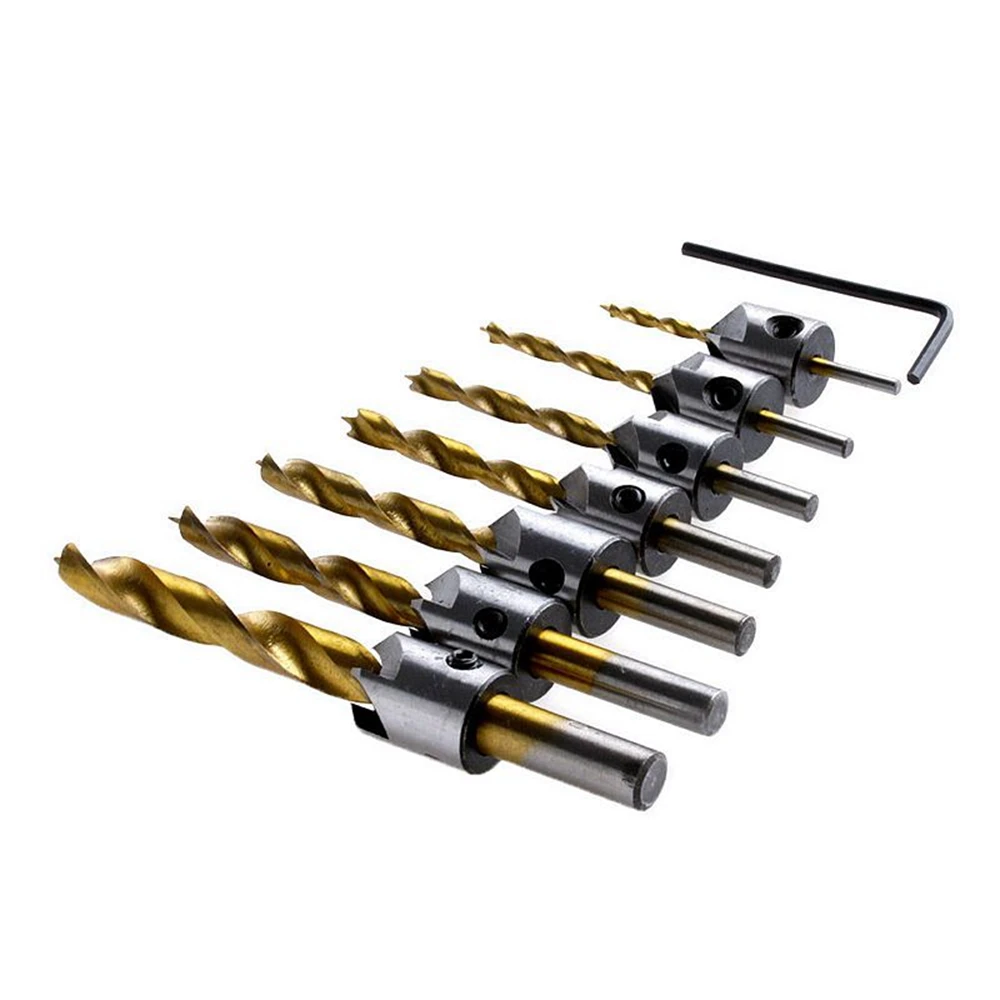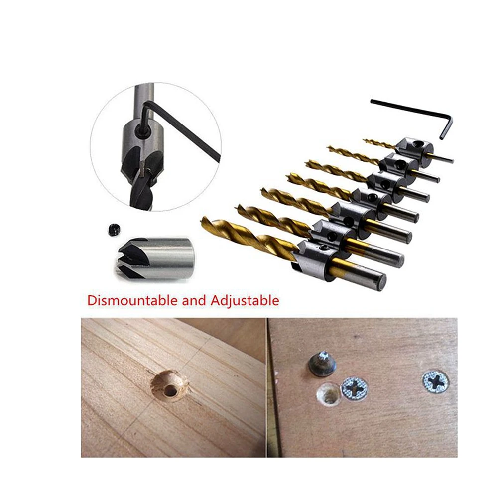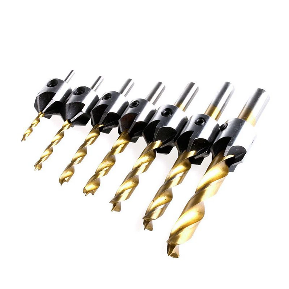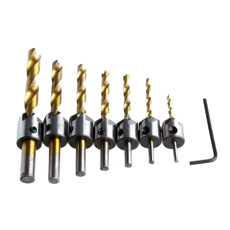 7Db 3 4 5 6 7 8 10 Mm Hss Fuvola -Countersink Fúróbites Készlet Reamer Wasurting Chamfer Tokka