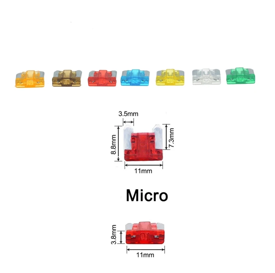 80Db/Tétel Mikro Mini Autó Alacsony Profilú Penge Biztosítékkészlet 3A 5A 7.5A 10A 15A 20A 25A 30A Klipekkel Bármilyen Típusú Autóhoz