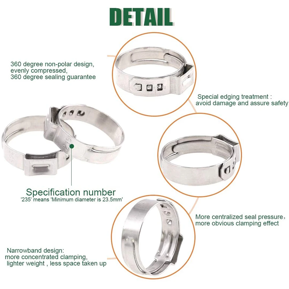 - Feature7: single ear stepless hose clamp
