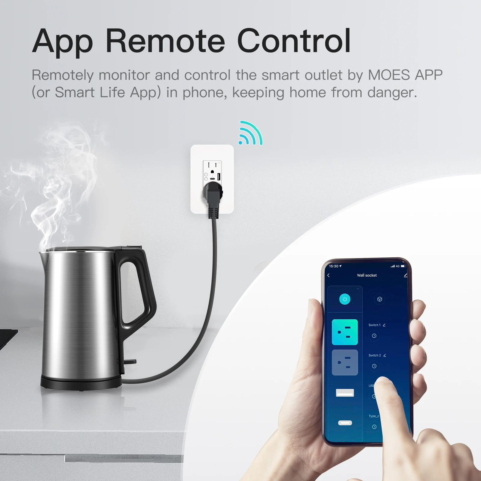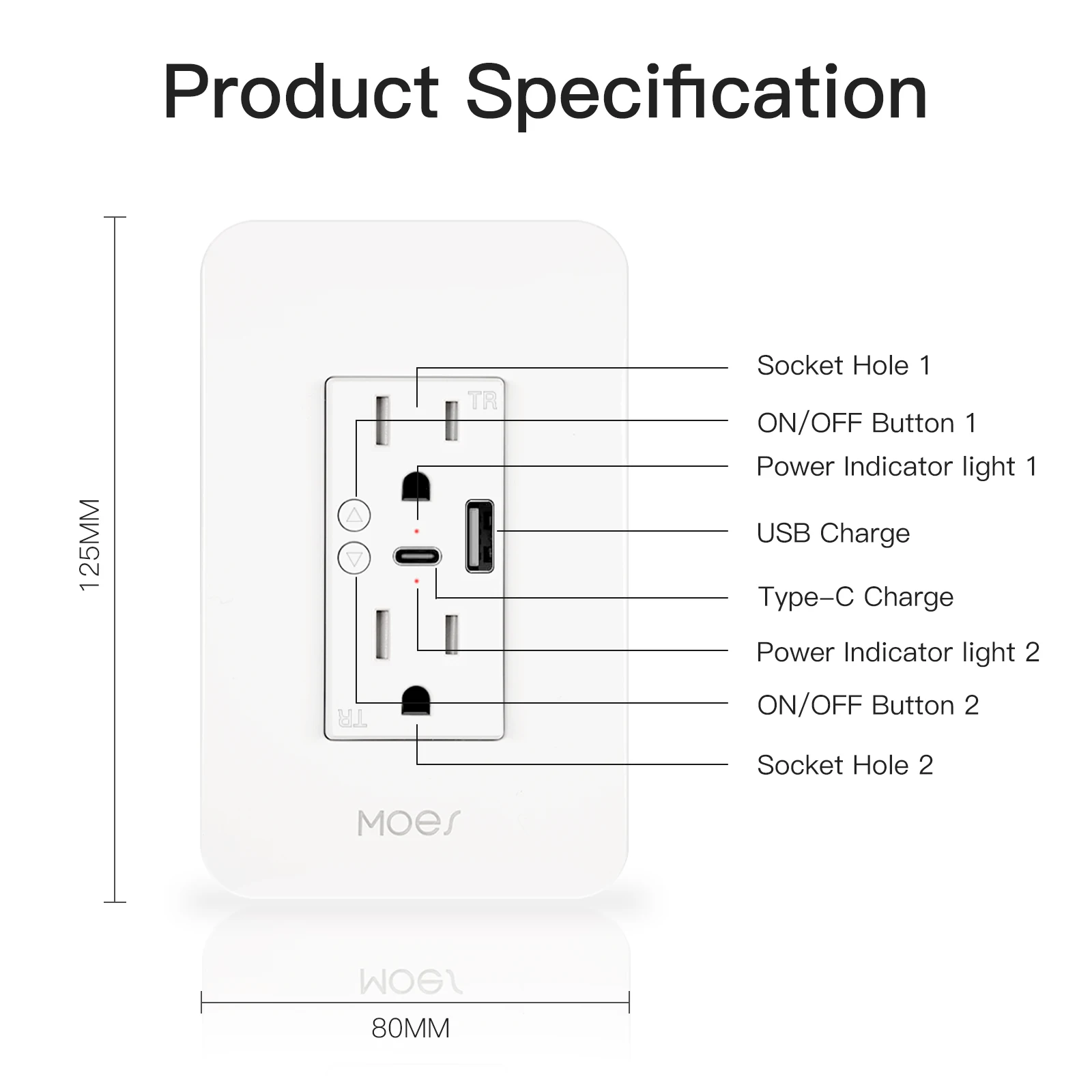 A Moes Wifi Power Wall Aljzat C Típusú És Usb -Vel, Kettős Intelligens Outlet Dugó Potenciális Kimenetek Támogatja Az Alexa Google Home -T