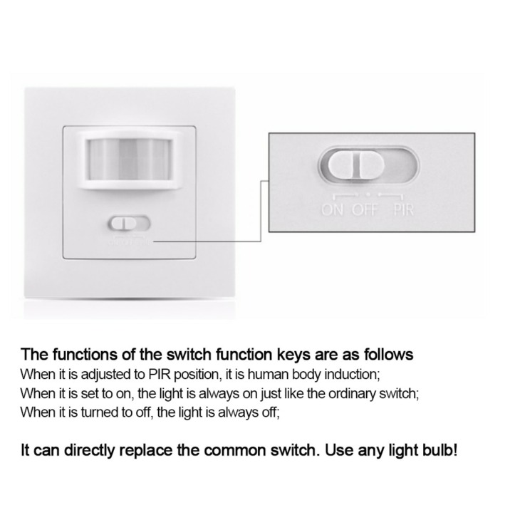 - Features: Infrared PIR Motion Sensor Switch