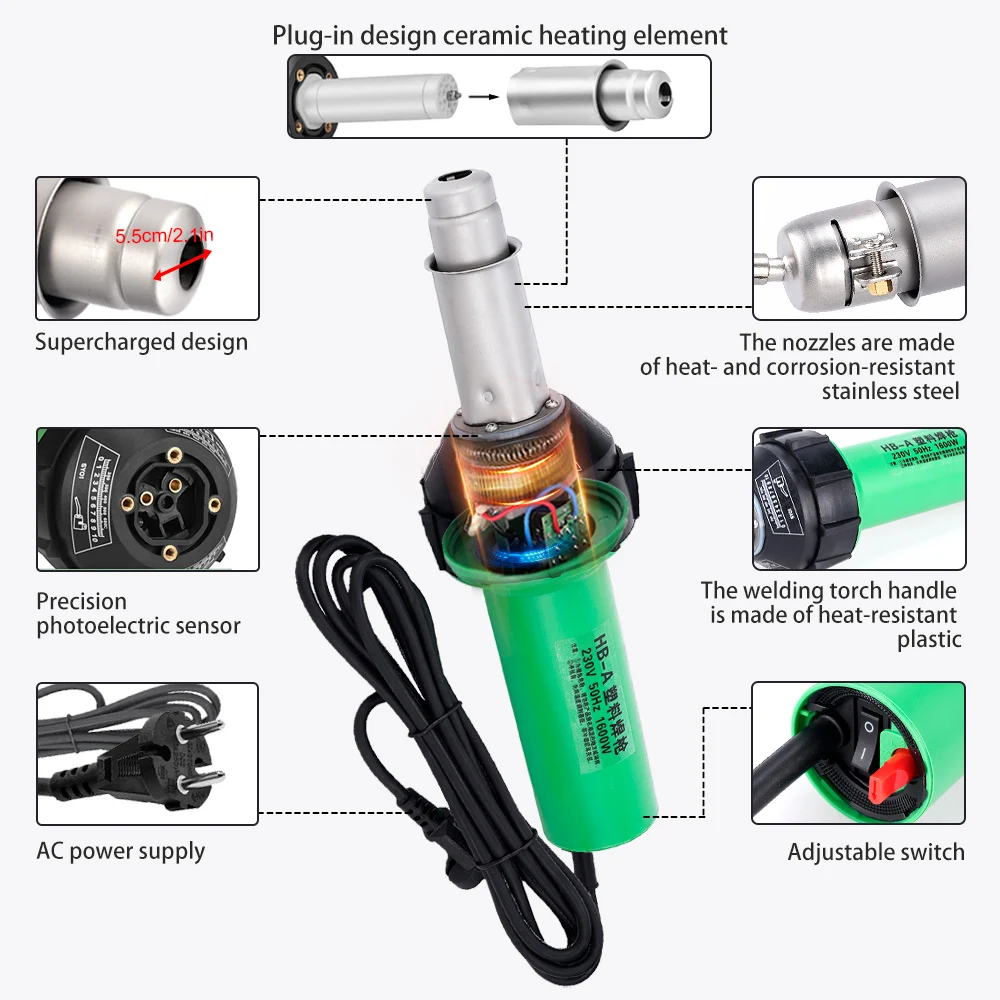 Ac 220V 1600W Műanyag Hegesztőpisztoly Elektromos Forró Levegő Fúvó Hegesztő Fáklyakészlet Integrált Hegesztőgép Fűtési Magkészlet