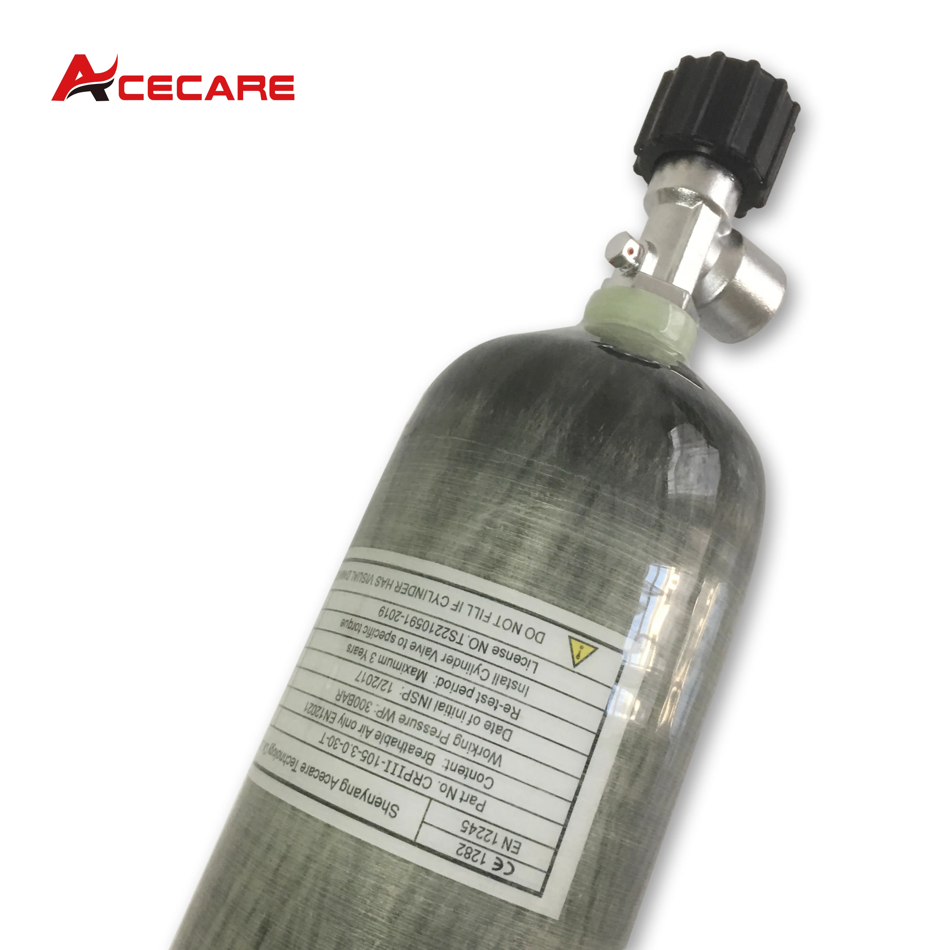 Acecare 3L Ce 4500Psi 30Mpa Szénszálas Hengeres Légtartály Normál Szeleppel Búvárkodáshoz