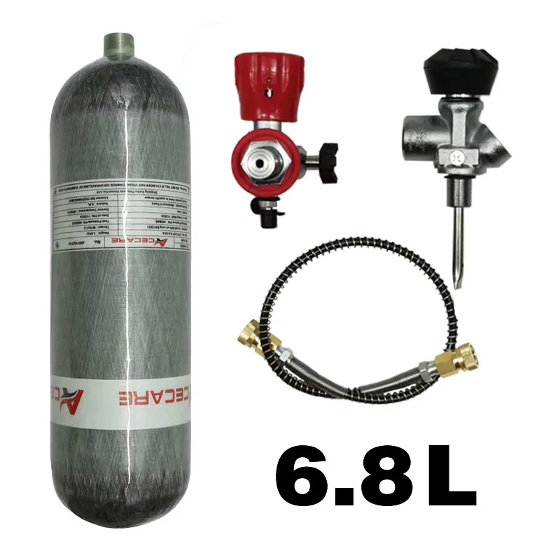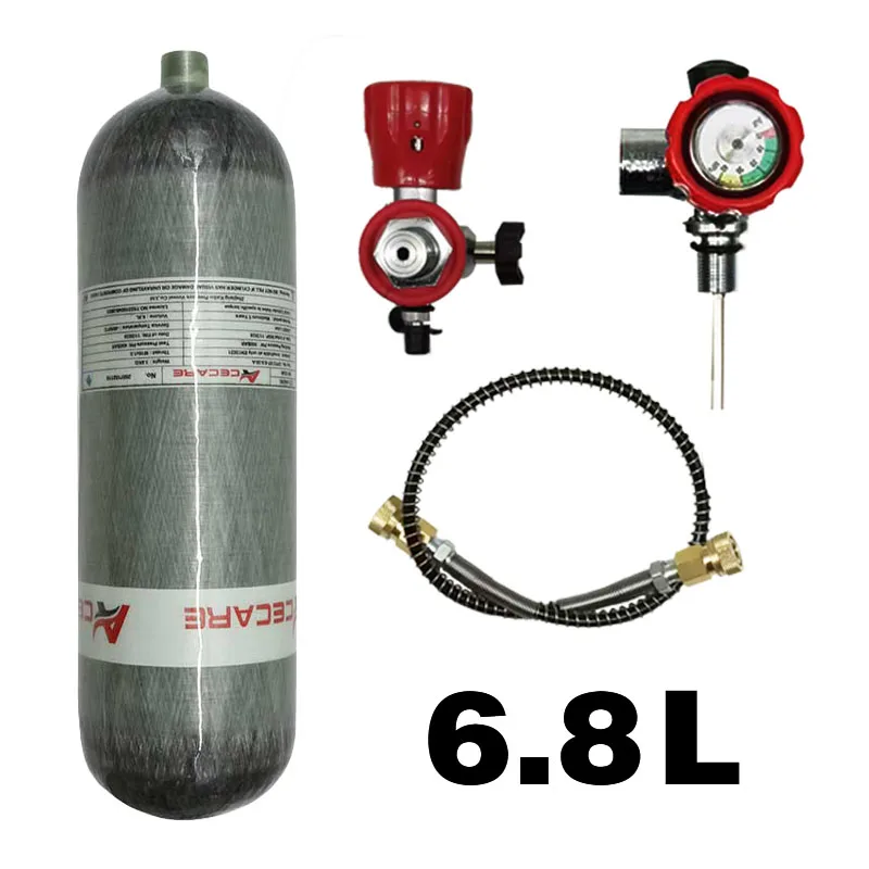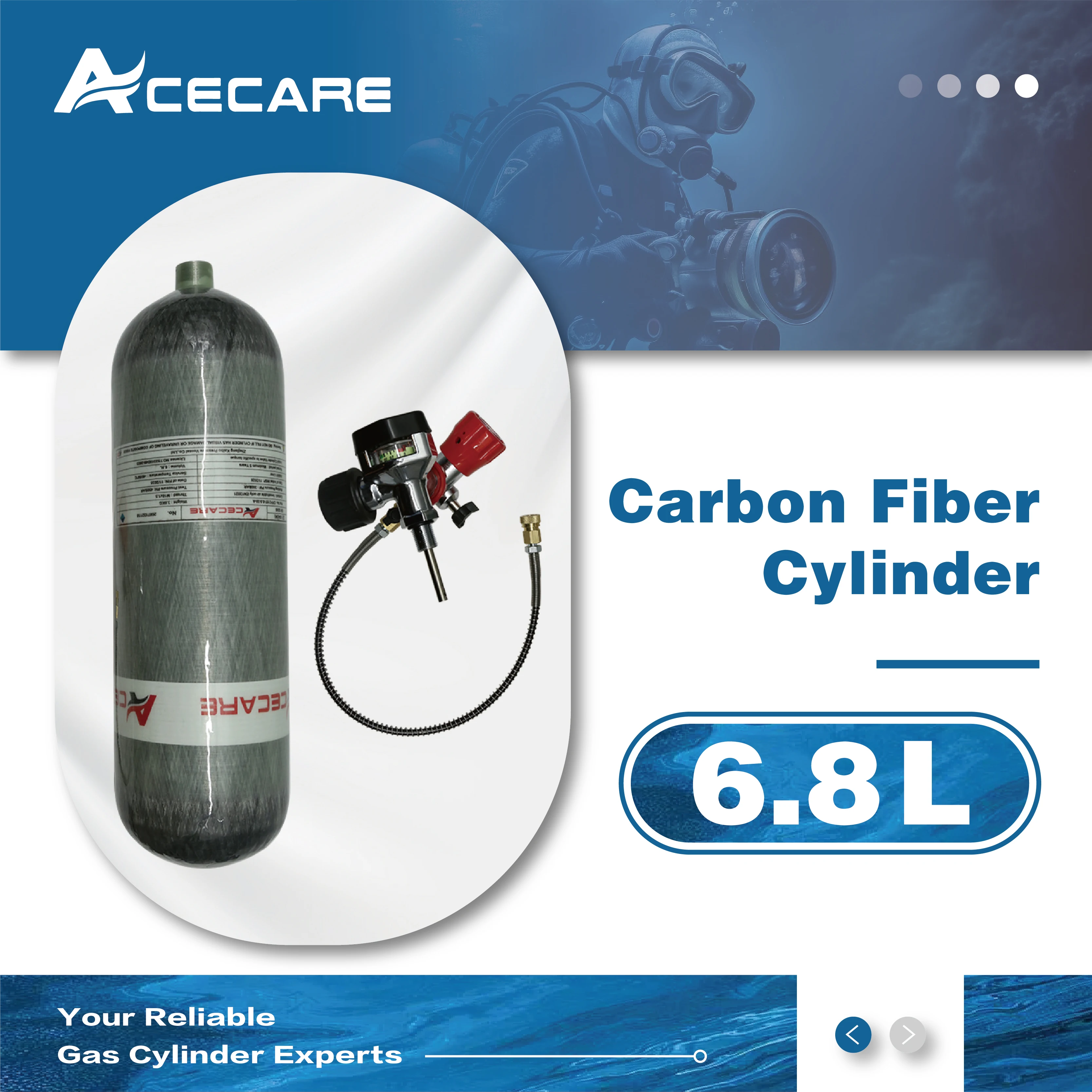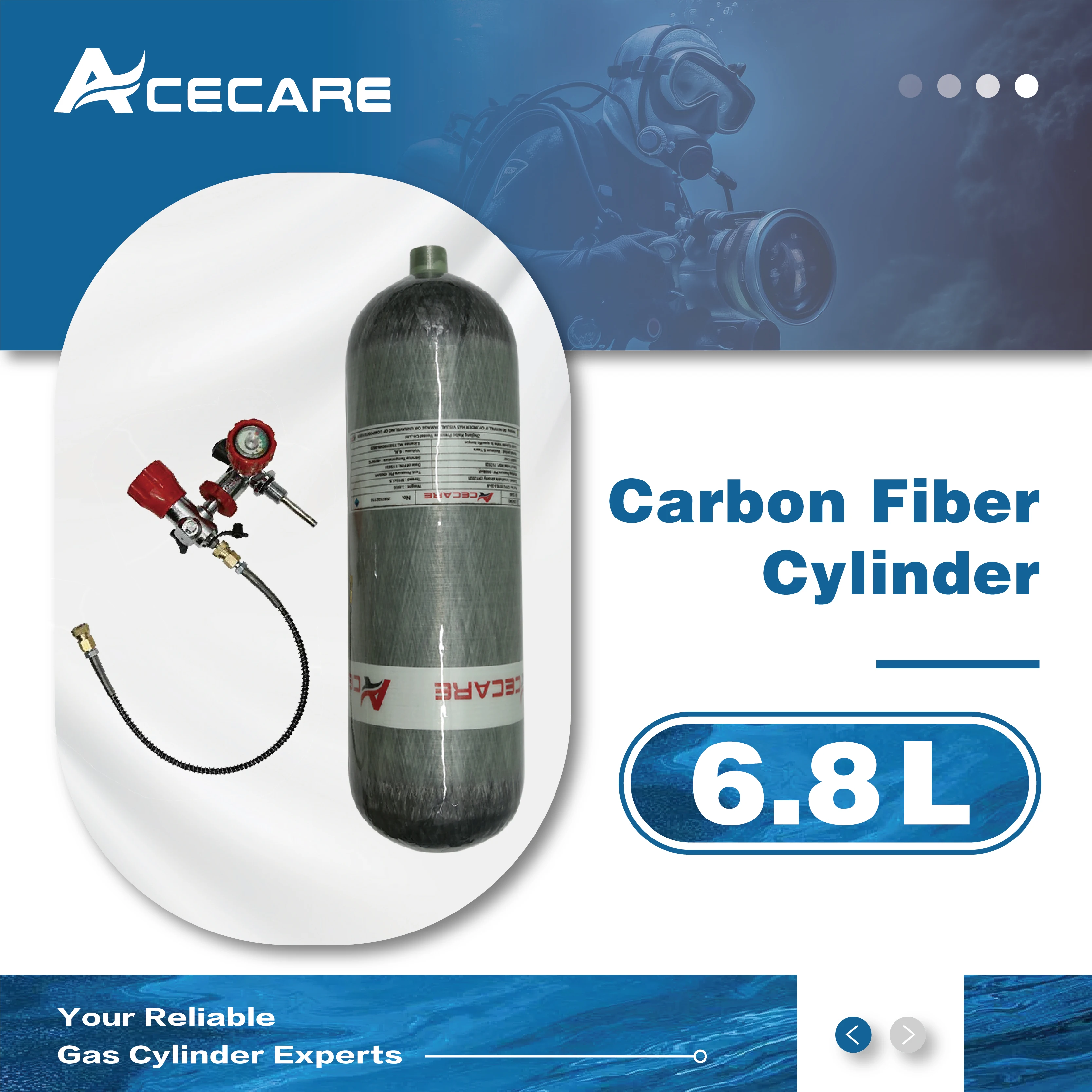 Acecare 6.8L 300Bar Szénszálas Henger 4500Psi Scuba Búvártartály Hpa 30Mpa Szelep Iratállomás Tűzbiztonsági Tűzoltáshoz