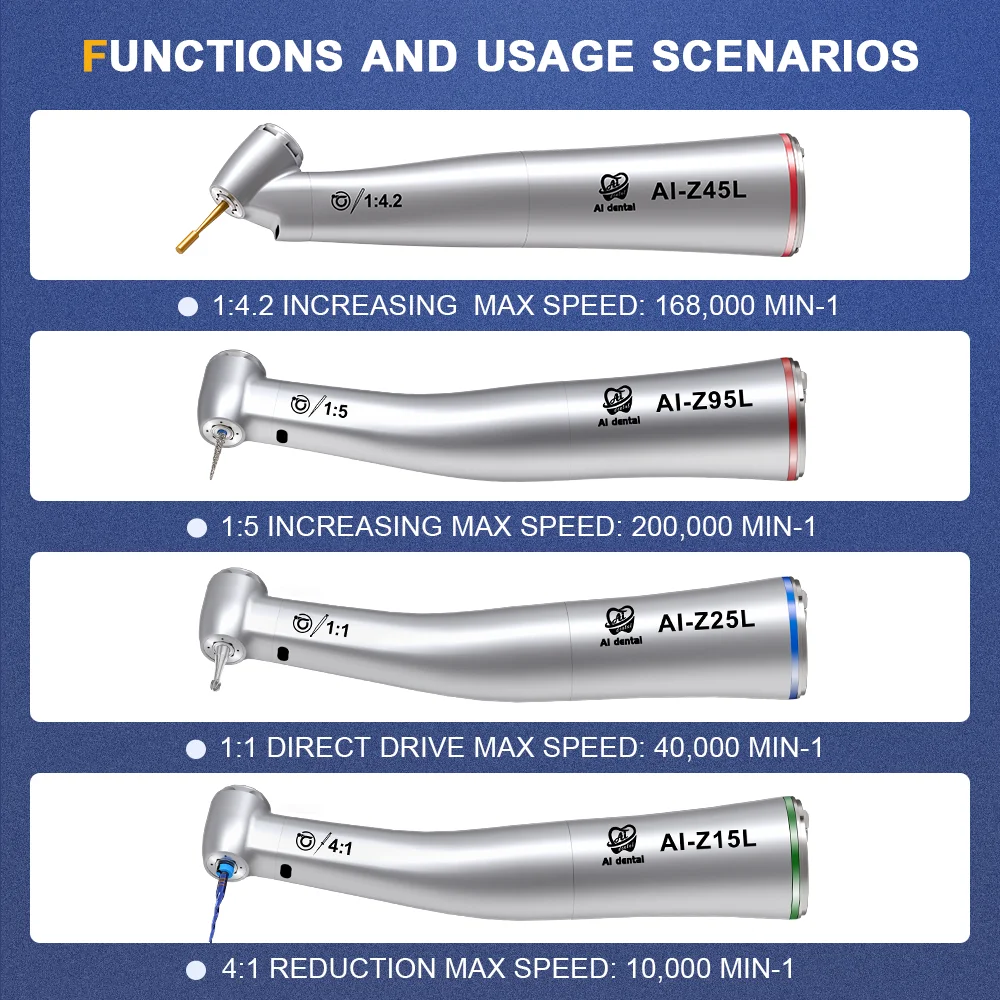 Ai-Z Sorozat Z45L/Z95L/Z25L/Z15L/Z65L Egyenes, Alacsony Sebességű Kontra Szög Fogdarulás Led Elektromos Motoros Fogászati Eszközökhöz